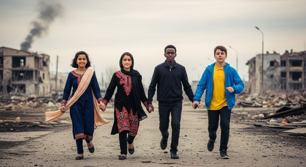 Roxanne; Parwana; Mahir; Dmytro; la professeure