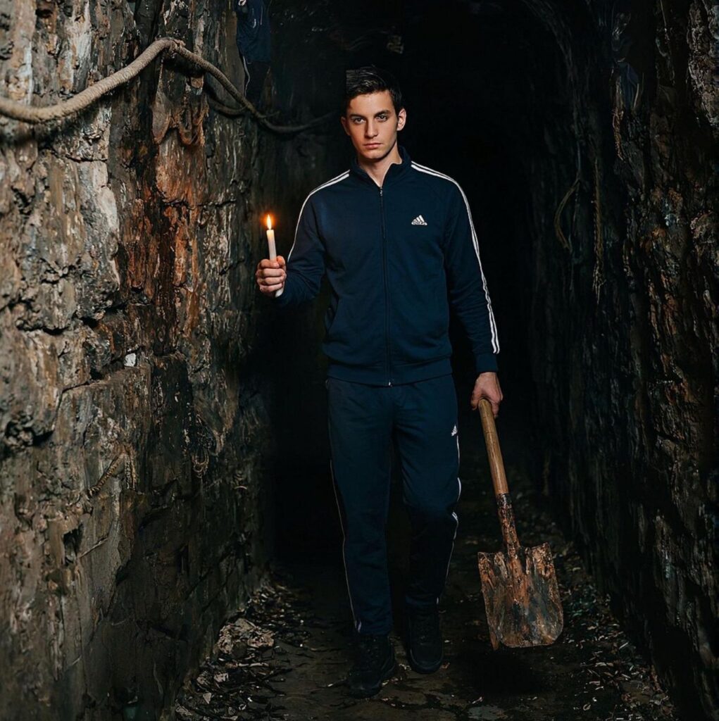 En suivant le câble qui arrive à notre tableau électrique, je m’engage dans une galerie sombre et humide. L’endroit est flippant. En plus de l’étroitesse de plusieurs passages, les parois suintent, des fissures courent ici et là. Tout me fait craindre que la structure ait mal vieilli, et qu’elle puisse s’écrouler sur moi à tout moment. Je poursuis à la lueur d’une flamme de bougie vacillante. Ça ne sent pas vraiment bon, mélange d’humidité et de pourriture ! Je ramasse au passage une pelle de chantier rouillée et abandonnée, on ne sait jamais !